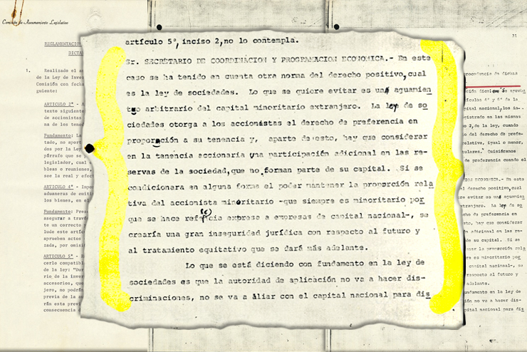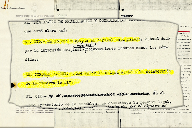 La presión que ejercieron los civiles se observa en los debates que están detallados en las actas de esa reunión de enero de 1977. No sólo Klein se encarga de agitar el fantasma de la “inseguridad jurídica” para equiparar al capital extranjero con los inversores nacionales, también se preocupa –él y sus hombres- por evitar que se conozca el origen de las inversiones.