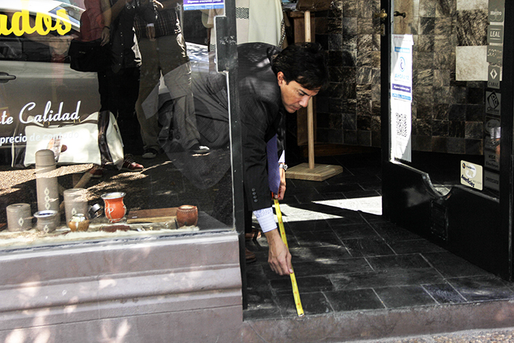 Andrés, el hijo de la víctima fue el encargado de dar a las autoridades judiciales detalles del negocio de su madre. Cuando terminó la recorrida, el abogado Munné dijo a los medios que se habían concentrado en la vereda que se había podido constatar que las características reales físicas del lugar pusieron en crisis y desmienten el relato de los imputados.