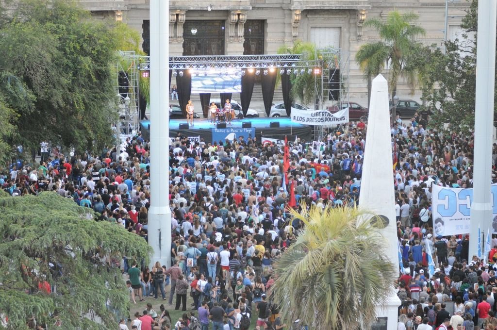 Llegados frente a la Casa de Gobierno, las columnas se organizaron cubriendo gran parte de la renovada plaza. “Una de las veces que más gente vemos”, se escuchó desde el escenario que recibía a los que se acercaban.