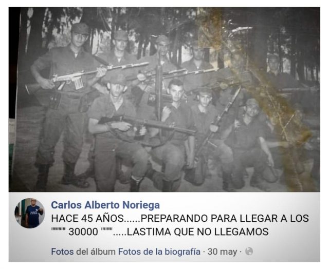 El portal elotro.com.ar alertó además que en sus redes sociales personales, el hombre celebra el Operativo Independencia e incluso compartió una foto prestando servicio en la fuerza con la frase: "Hace 45 años… Preparando para llegar a los ‘30000’… Lástima que no llegamos".