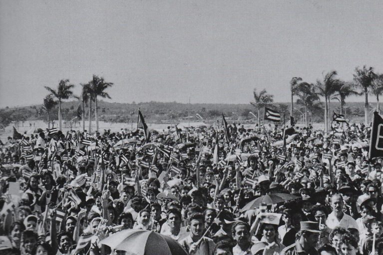 -A partir de que se suma al Movimiento 26 de Julio y a la lucha revolucionaria, hay una claridad total de que cada fotografía que saca queda para la historia y de que él es a la vez protagonista y testigo de la Revolución. En las imágenes se ve perfectamente ese doble rol; toma, por ejemplo, las fotos de los actos de la Revolución: él, desde arriba del escenario, registra al pueblo que está ahí abajo o le saca una foto a Fidel desde el costado, con ángulos rarísimos, donde se ve la frente de Fidel y el pueblo detrás. Ahí ya es el Che Guevara el que está sacando la foto.