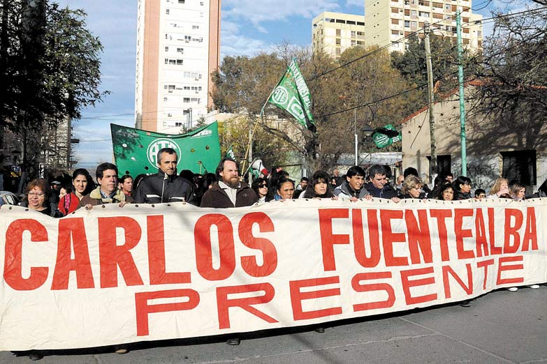 El maestro Carlos Fuentealba murió por el impacto en la cabeza de una granada de gas lacrimógeno disparada por el cabo de la policía neuquina Darío Poblete el 4 de abril de 2007, durante una manifestación del gremio docente en la ruta nacional 22, en cercanías del paraje Arroyito.